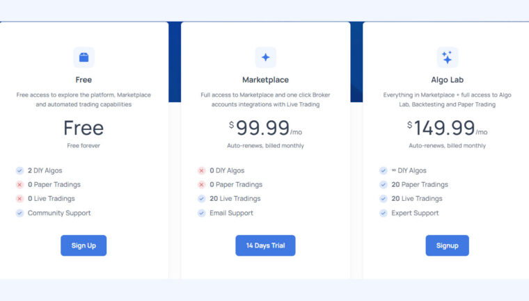 - Marketplace: Our platform provides a marketplace for algo traders to sell their strategies to other users on the platform.